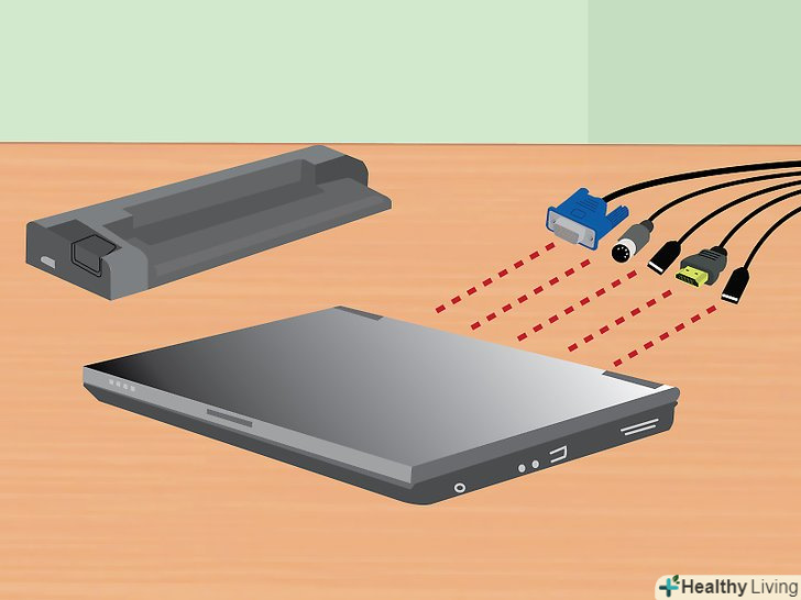 Ви можете ефективно працювати на ноутбуці вдома, в офісі або навіть на вулиці. Проте, ноутбуки не розраховані на тривалу роботу з ними за письмовим столом; більш того, часто вони не настільки ефективні як настільні комп'ютери. Але ви можете підключити ноутбук до док-станції і користуватися монітором, клавіатурою, мишею та іншими периферійними пристроями за вашим вибором.[1] Док-станції бувають різних типів, але підключити до них ноутбук дуже просто!