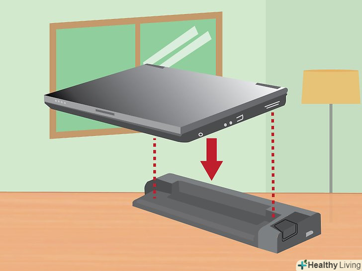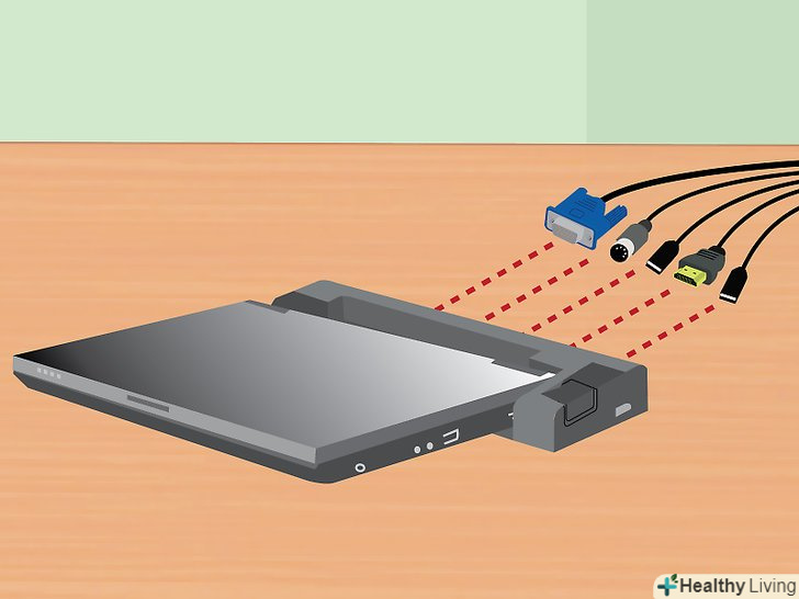 - У похилих док-станціях просто встановіть ваш ноутбук на похилу панель. На таких станціях конекторів, як правило, немає; такі док-станцій підключаються до ноутбука за допомогою кабелів.