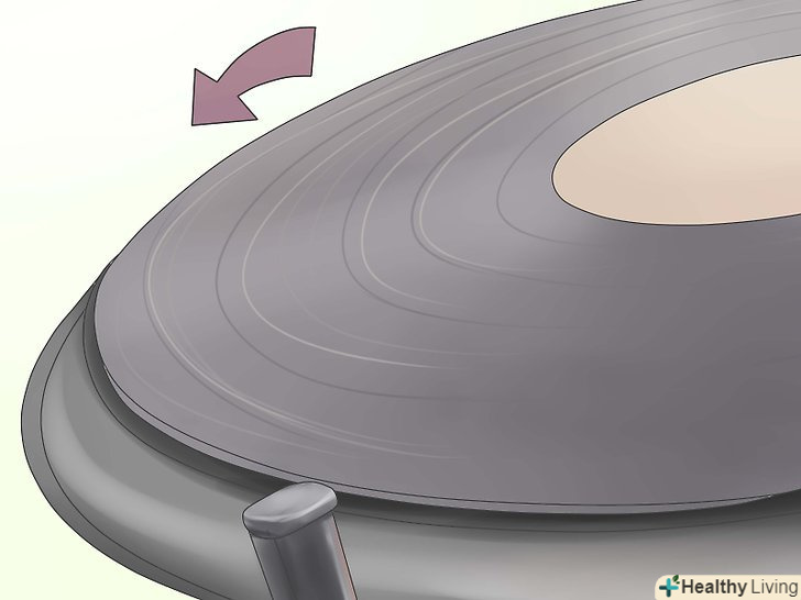 Підніміть пилозахисну кришку.на вінілових програвачах часто встановлена пилозахисна кришка, яка допомагає охороняти всі деталі в чистоті, поки програвач не використовується. Якщо кришка на вашому програвачі закріплена на петлях, ви можете її знову опустити, після того як запустите запис. Якщо кришка просто знімається, відкладіть її в сторону, поки не закінчите прослуховування музики.