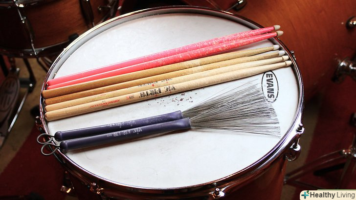 Обзаведіться відповіднимиБарабанними паличками.варіацій типів і розмірів паличок ціла маса, і серед них немає поганих і хороших. 5A-це розмір, з якого найчастіше починають новачки.[4]- Купуючи палички, проконсультуйтеся зі своїм викладачем. Запитайте у нього, Як правильно тримати паличку, як бити вбарабан. Якщо ви придбалиударну установку , дізнайтеся, як її зібрати і налаштувати. Якщо у вас немає викладача, Ви можете знайти масу інформації на цю тему в Інтернеті.