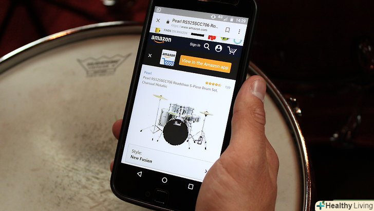 Придбайте свій інструмент.якщо ви вирішили займатися грою на барабанах, перед покупкою буде корисно ознайомитися з усіма можливими варіантами, представленими на первинному і вторинному ринках. Спілкуйтеся з продавцями в магазинах і більш досвідченими барабанщиками, вони дадуть вам безліч корисних порад і допоможуть зорієнтуватися. Для початку підійде недорога нова або вживана ударна установка. Не витрачайте багато грошей, поки ви не зрозумієте, що барабани-це ваше покликання.- Якщо у вашій школі є музичний гурток або оркестр, ви можете до нього приєднатися, щоб отримати доступ до інструменту і поради від викладача. Навіть якщо в оркестрі немає місця, запитайте, чи можна вам приходити і займатися кілька разів на тиждень. Музиканти зазвичай дуже доброзичливі хлопці, так що не соромтеся задавати питання.