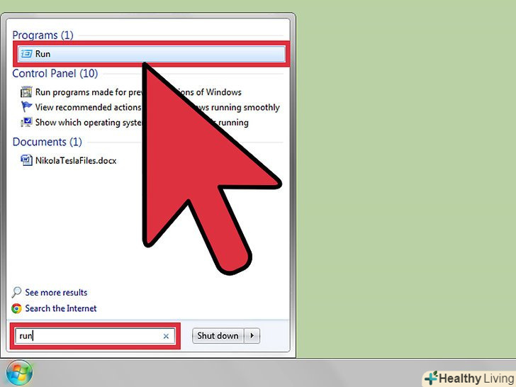 Натисніть "Виконати".якщо кнопки "виконати «немає в меню» Пуск«, Натисніть» Пуск «і в рядку пошуку введіть» виконати" (без лапок). У результатах пошуку клацніть лівою кнопкою миші по»виконати".