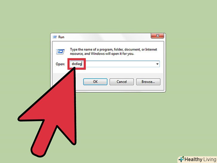 У цьому вікні введіть DxDiag і натисніть Enter (або натисніть ОК).