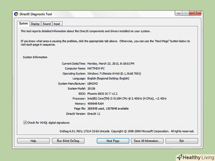 - Не змінюйте налаштування у вікні діагностики DirectX. Це може привести до небажаних наслідків.