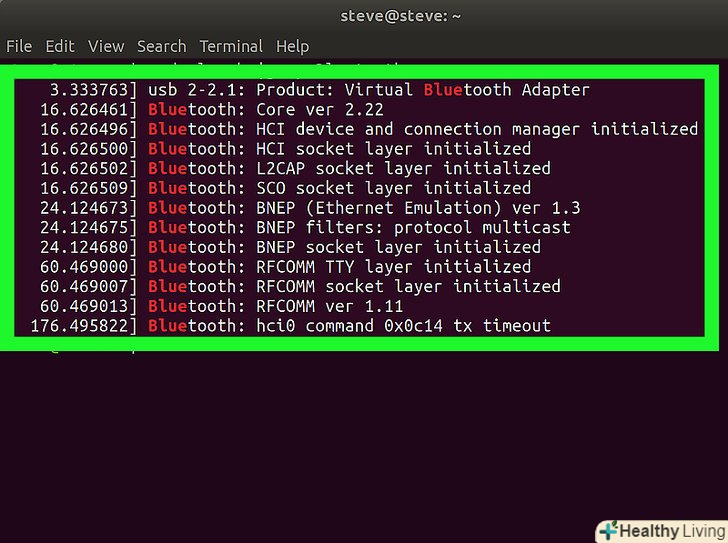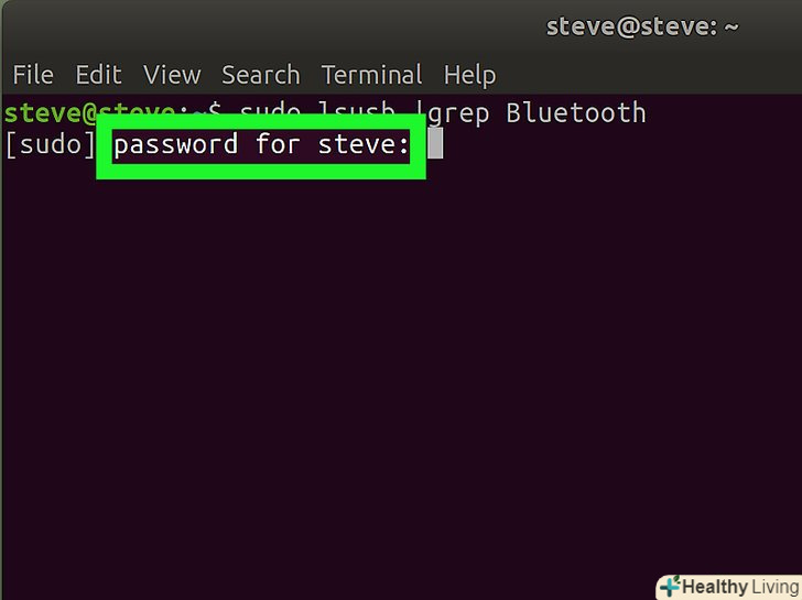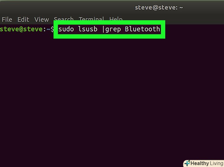 Введіть команду пошуку Bluetooth. введіть наступну команду, а потім натисніть ↵ Enter:Sudo lsusb|grep Bluetooth