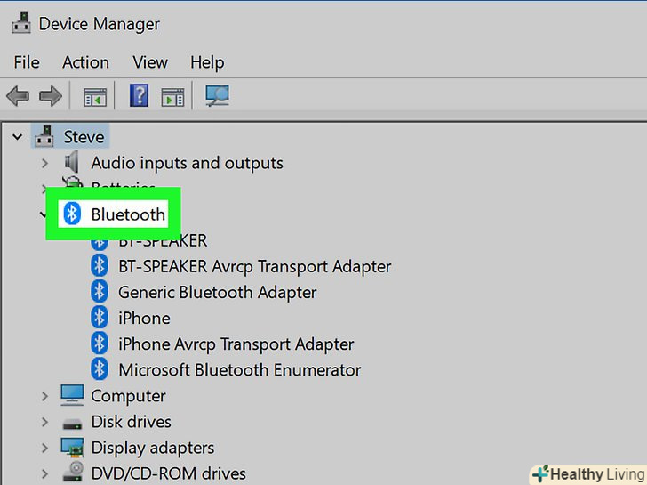 Знайдіть заголовок "Bluetooth".якщо він є (наприклад, у верхній частині вікна), на комп'ютері встановлено адаптер Bluetooth.- Якщо вам не вдалося знайти такий заголовок, Bluetooth на комп'ютері немає.