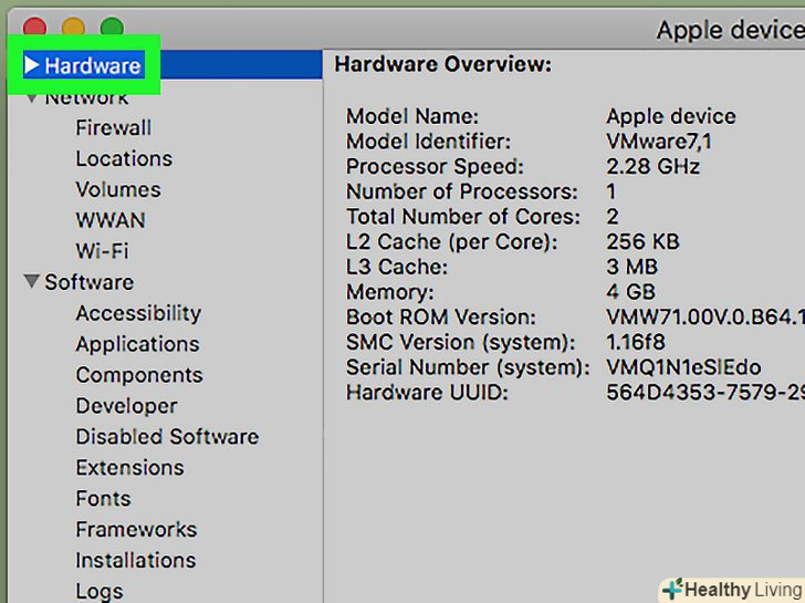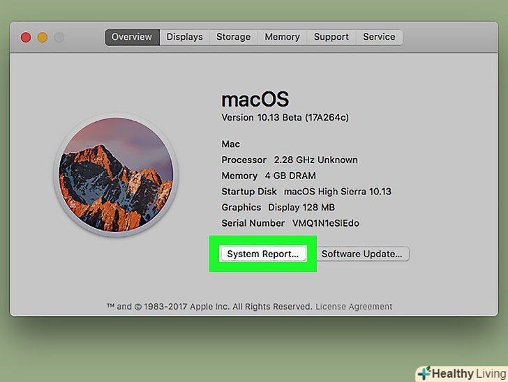 НатиснітьЗвіт про систему.ця опція знаходиться в нижній частині вікна "про це Mac". Відкриється нове вікно.- У старих версіях Mac OS X потрібно натиснути "Детальніше".