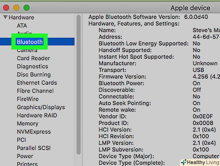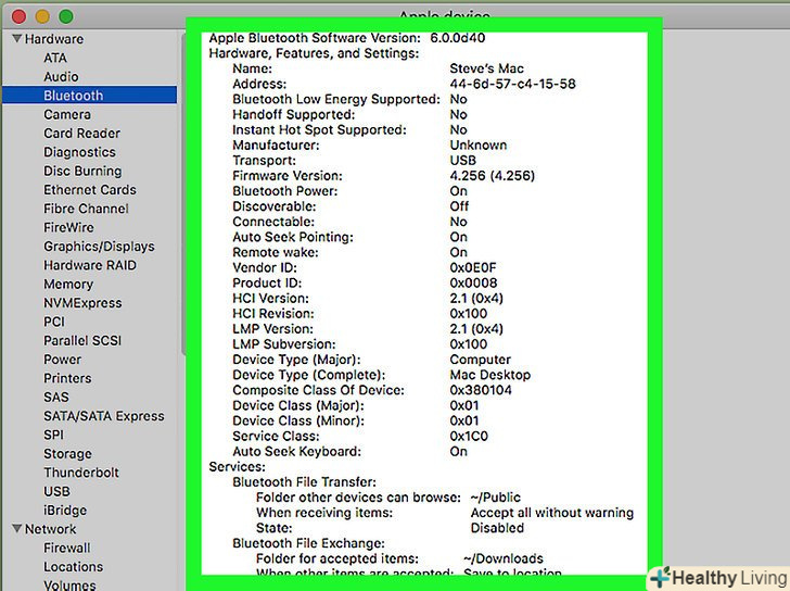 Підтвердіть, що на комп'ютері є Bluetooth.якщо ви знайшли заголовок "Bluetooth", натисніть на нього — якщо справа відобразилася інформація про Bluetooth, на комп'ютері встановлений відповідний адаптер; в іншому випадку на комп'ютері включити Bluetooth не вийде.