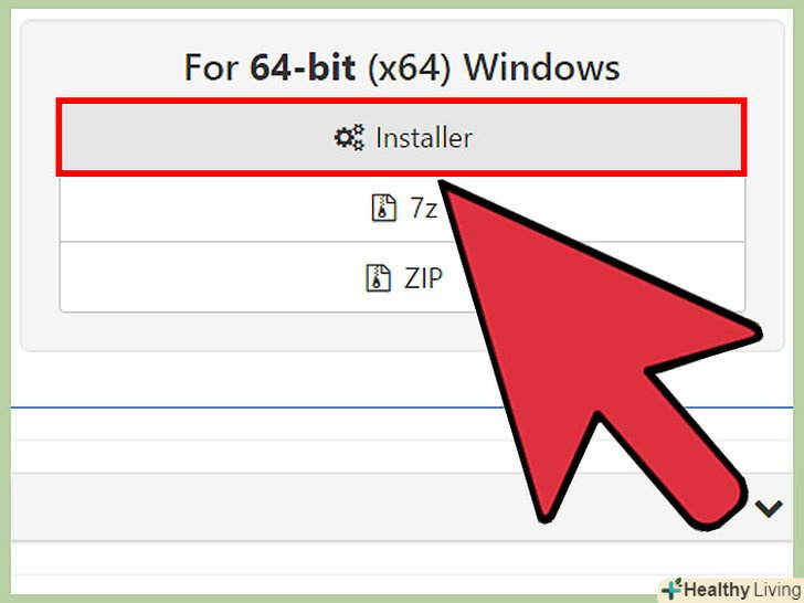 Натисніть " Installer "(установник) у розділі з відповідною версією Windows.це призведе до завантаження інсталяційного файлу MPC-HC.