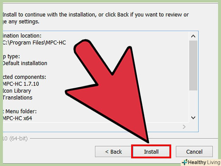 Запустіть інсталяційний файл і дотримуйтесь інструкцій на екрані. установник має невеликий розмір, тому його завантаження займе всього кілька хвилин. Завантаживши інсталяційний файл, запустіть його і дотримуйтесь інструкцій на екрані, щоб встановити MPC-HC. Можна не змінювати параметри, задані за замовчуванням.