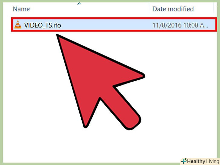 Виділіть файл VIDEO_TS.ifo. цей файл призведе до завантаження всього вмісту DVD-диска, тобто до відтворення меню DVD і доступу до спеціальних функцій.- Можна вибрати окремі VOB-файли, але це призведе до відтворення певного вмісту DVD-диска.