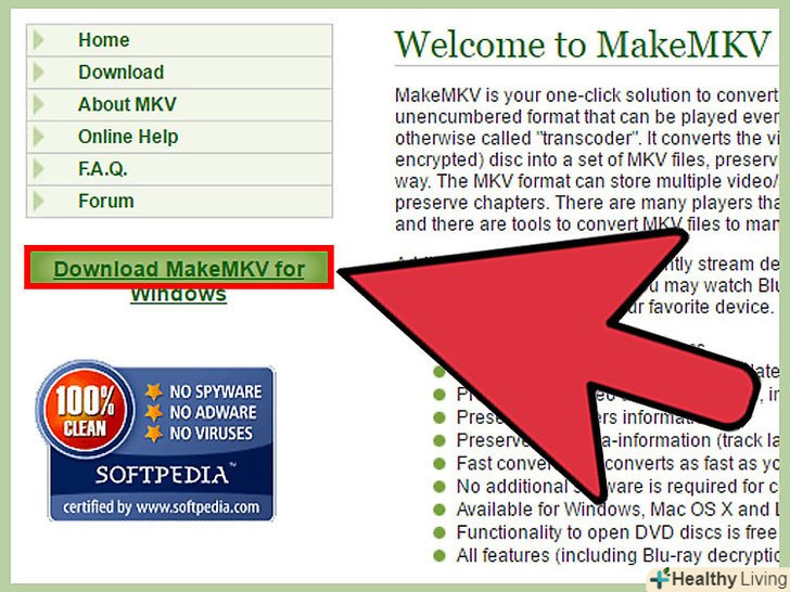 Скачайте MakeMKV.Plex насилу відтворює VOB-файли, тому краще скористатися MakeMKV, щоб перетворити їх в MKV-файли. Якість зображення і звуку не зміниться, так само як і глави, але доступ до меню DVD буде заблокований.[2]- Відкрийте сайтmakemkv.com / і натисніть " Download MakeMKV for Windows "(Завантажити MakeMKV для Windows), щоб завантажити інсталятор програми.