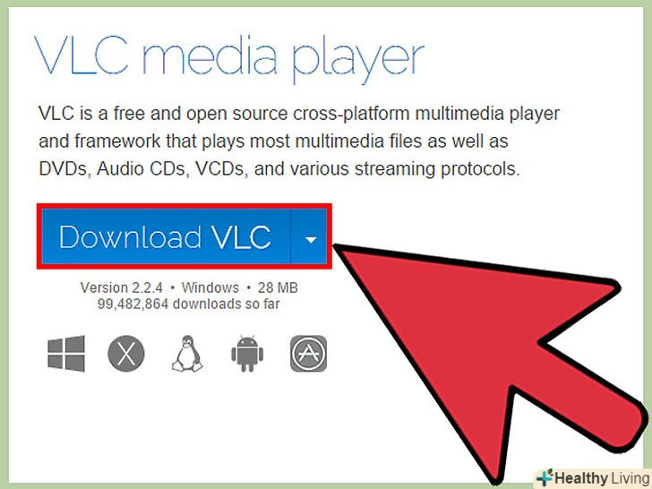 Натисніть "Завантажити VLC".завантажиться інсталяційний файл, відповідний вашій операційній системі. Якщо завантажився не той установник (наприклад, EXE-файл для Mac OS X), клацніть по логотипу відповідної операційної системи під кнопкою «Завантажити».