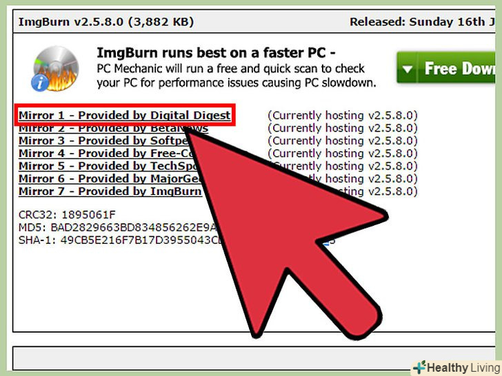 - Не завантажуйте ImgBurn з дзеркального сервера під номером 7, тому що в цьому випадку інсталяційний файл буде включати небажане (рекламне) програмне забезпечення, яке нікому не потрібно.