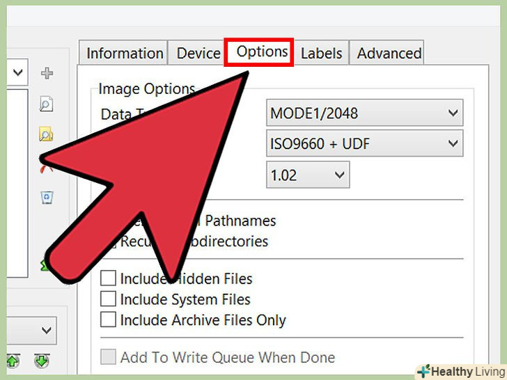 Перейдіть на вкладку "Параметри".відкриються параметри диска.