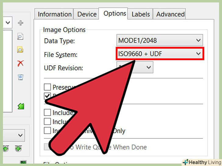 У меню «файлова система» виберіть "ISO9660 + UDF".у цьому випадку диск буде відтворюватися більшістю DVD-програвачів.