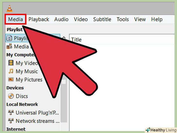 Натисніть "медіа «(Windows) або» Файл" (Mac OS Х).відобразяться опції, які дозволять відкрити медіафайл.