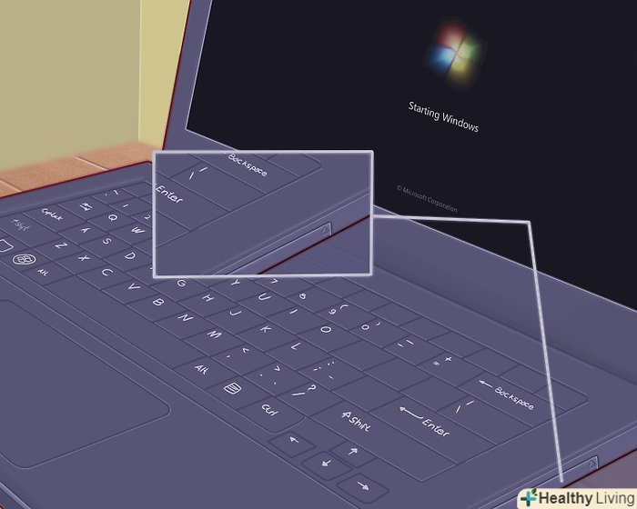 Знайдіть кнопку живлення і включіть її.у більшості ноутбуків кнопка живлення знаходиться трохи нижче (позаду) клавіатури. Кнопка живлення зазвичай відзначається універсальним символом 'POWER ON', гурток з лінією, що перетинає його наполовину.