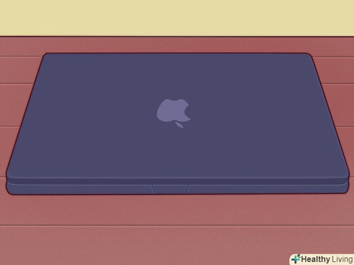 Помістіть нижній частиною ноутбук на письмовий / робочий стіл, за яким ви сидите.вони називаються "лаптопи", тому що їх можна ставити на коліна, але не означає, що це завжди найкраще і правильне місце. Спробуйте знайти зручний кут для зап'ясть і рук - що значить перемістити ноутбук так, поки не знайдете оптимальне для вас положення.- Не кладіть ноутбук на м'які, пухнасті або волохаті поверхні, які можуть блокувати його вентиляційні отвори. Більшість ноутбуків мають вентиляційні отвори, розташовані з боків і внизу, які повинні бути залишені відкритими при запуску ноутбука.