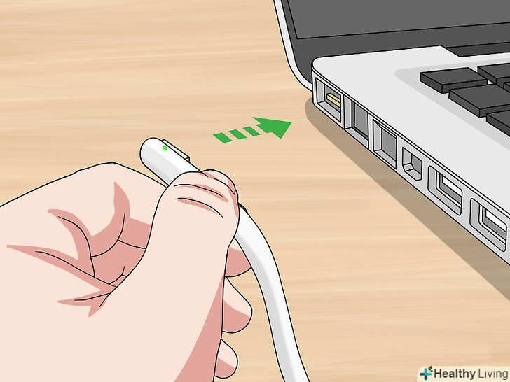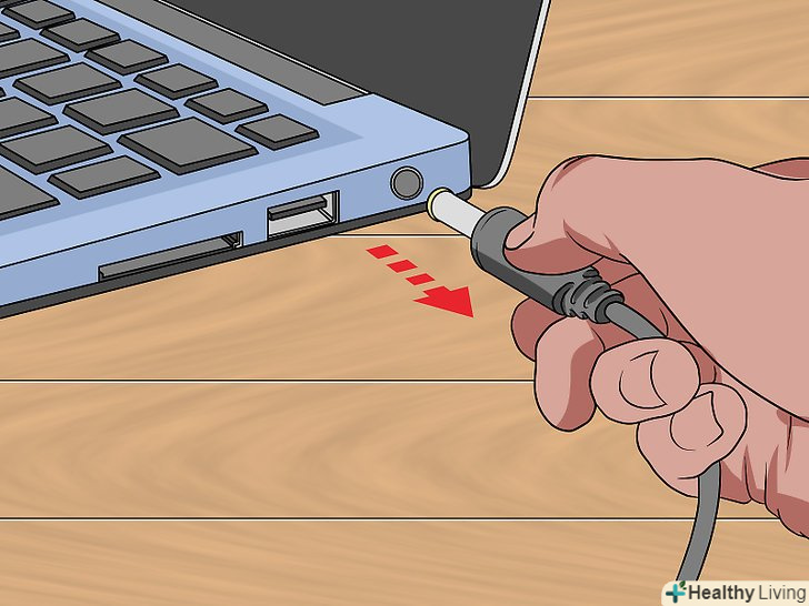 Від'єднайте зарядний кабель від ноутбука.- Для цього витягніть вилку з розетки — ніколи першим не витягуйте зарядний кабель з ноутбука, щоб не пошкодити його.