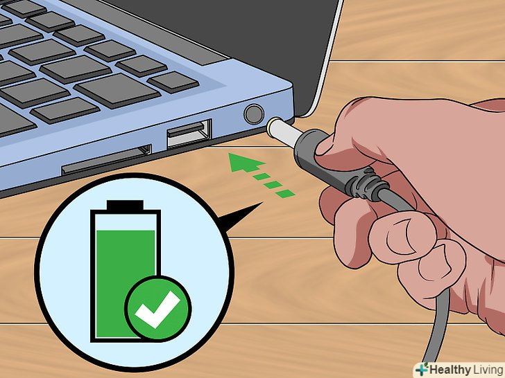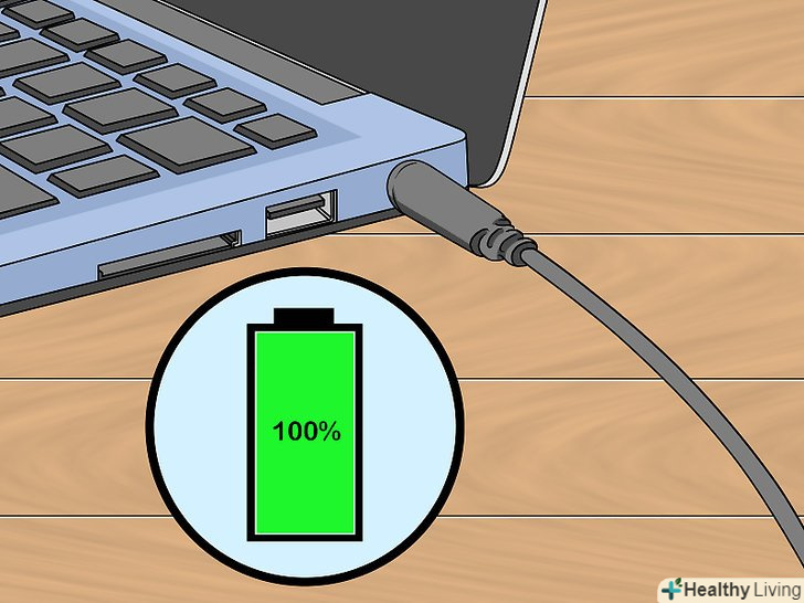 Зарядіть акумулятор.підключіть до ноутбука зарядний кабель.- Цей процес буде більш ефективним, якщо заряджати акумулятор якомога довше.
