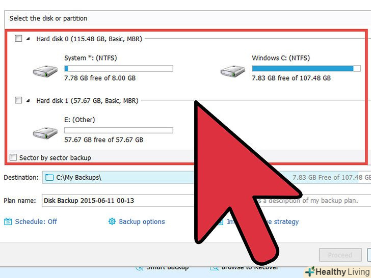 Визначте місце розташування резервної копії: на тому ж жорсткому диску або на іншому (зовнішньому) жорсткому диску.