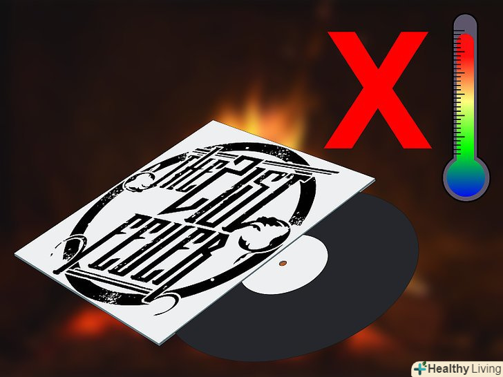 Захистіть записи від спеки.тепло-ворог пластинок, тому що веде до їх деформації. [1][2] Зберігайте записи далеко від джерел нагрівання, таких як плінтуси, відкритий вогонь, печі, нагрівачі і т.д. також пластинки слід зберігати далеко від вологих приміщень, так як вологість є благодатним грунтом для росту цвілі, яка може знищити ваші пластинки, видані обмеженим тиражем.[3]- Тримайте пластинки далеко від прямих сонячних променів. Сонячне світло може пошкодити пластинки так само, як тепло і ультрафіолетові промені.[4]