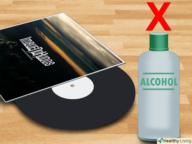 - Змочіть тканину миючою сумішшю, приготовленої з 1 частини ізопропілового спирту і 4 частин дистильованої води (20 відсотків ізопропілового на 80 відсотків води).[10] Примітка: Не використовуйте цю суміш для пластинок 78-го року, тому що вони зроблені з шелаку - див.наступний крок.