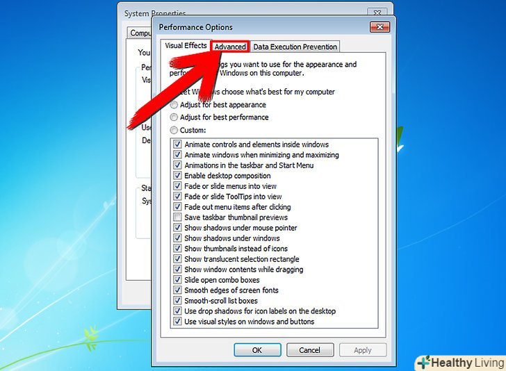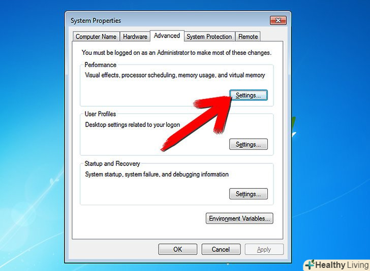- Якщо ви використовуєте Windows 7. Почніть з кроків 1 і 2, але потім з'явиться окреме вікно. Просто натисніть "Advanced system settings" на бічній панелі і продовжите кроки.