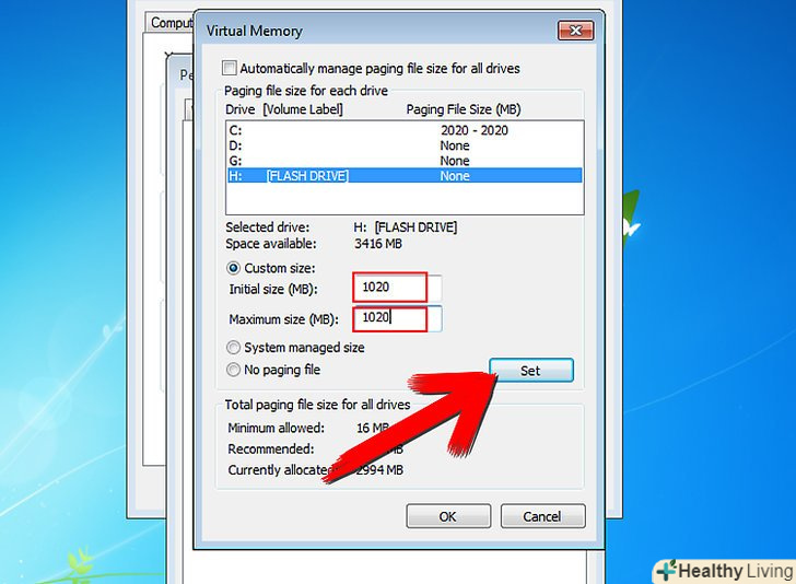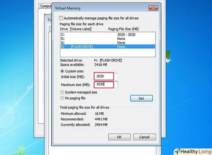 Поставте прапорець Custom size і задайте наступні значення:- Initial Size:1020