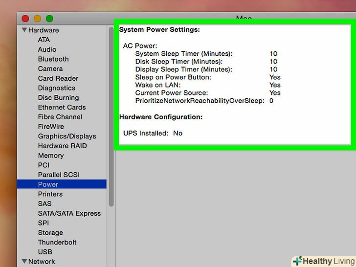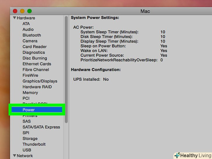 Клацніть поХарчування.ви знайдете цю опцію на лівій панелі в розділі "Обладнання".