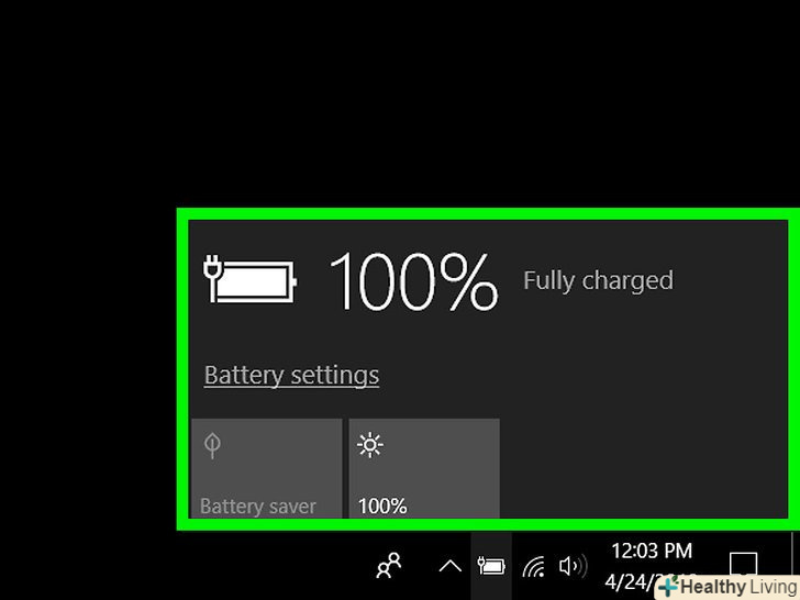 Подивіться на значок акумулятора. ви знайдете його в нижньому правому куті на панелі завдань, яка розташована внизу екрану. Якщо на значку батареї відображається червоний символ "x", з батареєю щось не так.