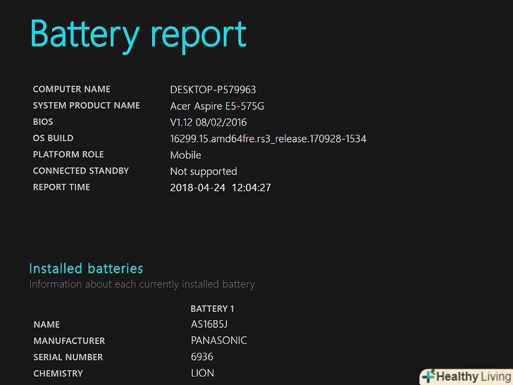 Введіть командуpowercfg /batteryreport.ця команда створить звіт про стан акумулятора.