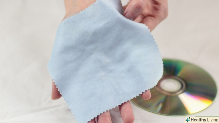Знайдіть двосторонню тканину для чищення ювелірних виробів - з чистячою і полірувальною сторонами.крім того ви можете використовувати ганчірочку для чищення окулярів. [1]- Тримайте диск за краї недомінантною рукою.витріть диск по радіусу рухами від центру до країв. Продовжуйте витирати весь диск від центру назовні.