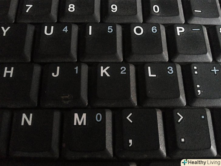 - Натисніть клавішу у верхньому правому куті клавіатури, яка називається "Num Lock / ScrLk". Це включить функцію і при використанні букв U, I, O, J, K, L, M будуть вводиться цифри.