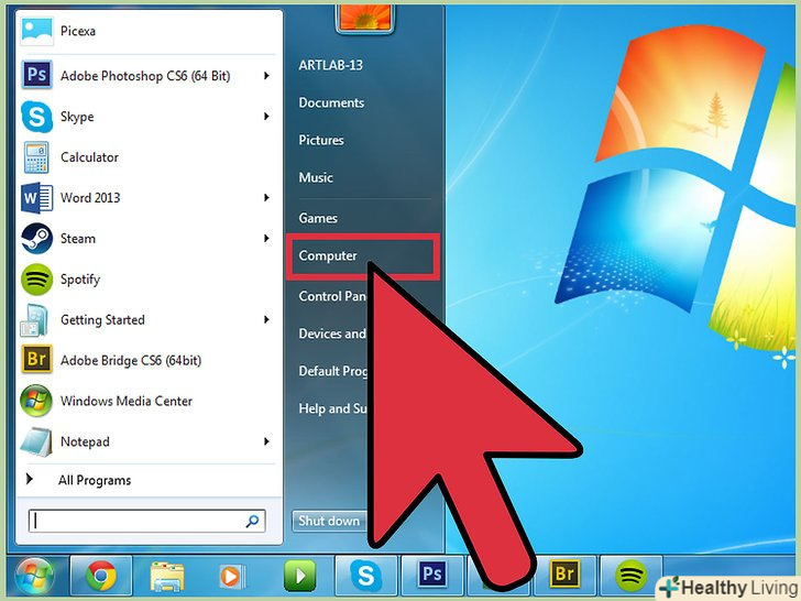 Натисніть "Комп'ютер" (у правій панелі меню).відкриється Провідник Windows..