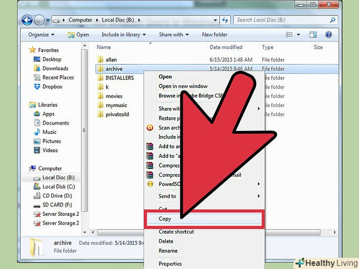 Перемістіть файли.цей процес буде залежати від вашої версії Windows::- Windows 7. У меню вікна натисніть "Правка «і в випадаючому меню виберіть або» перемістити в папку «(файли будуть видалені і перенесені), або» Копіювати в папку" (файли будуть скопійовані).