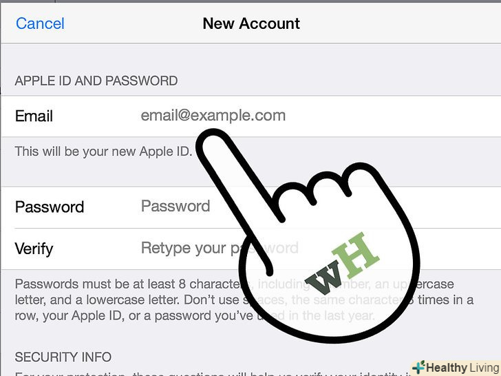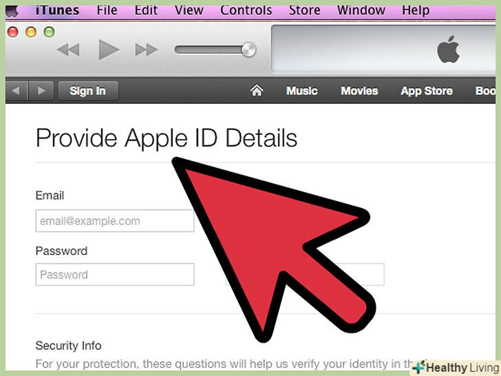 Заповніть форму.відкриється нова сторінка, на якій вам потрібно буде ввести свою особисту інформацію. Вам потрібно ввести електронну адресу, пароль, питання безпеки і дату народження.- Якщо ви не хочете отримувати листи від Apple, зніміть галочку з поля внизу сторінки.