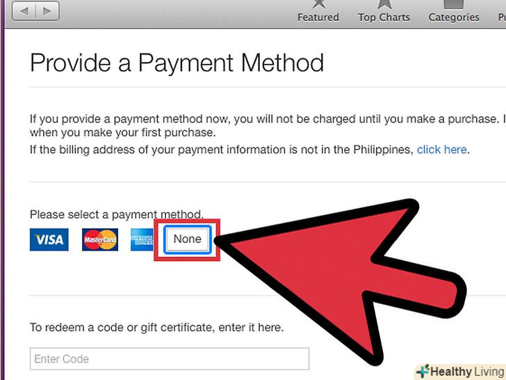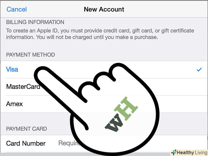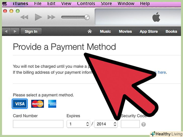 Вкажіть інформацію про оплату.вам потрібно ввести інформацію робочої банківської карти, якщо ви хочете здійснювати покупки на iTunes. Навіть якщо ви не хочете, щоб до вашого профілю була прикріплена банківська карта, вам все одно потрібно вказати її. Після реєстрації ви зможете видалити інформацію про свою банківську карту.