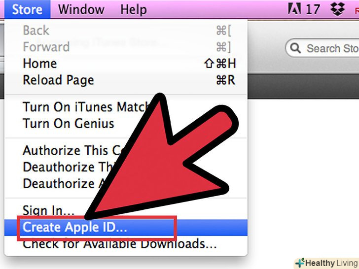 Натисніть на меню магазину.виберіть опцію "Створити Apple ID"з меню. Прочитайте і погодьтеся з умовами ліцензійної угоди і натисніть "Далі".