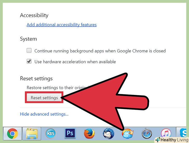 - У Chrome натисніть " Меню "gt; «Налаштування» gt; «Додаткові». Прокрутіть вниз і натисніть "відновлення налаштувань" gt;»скинути налаштування";
