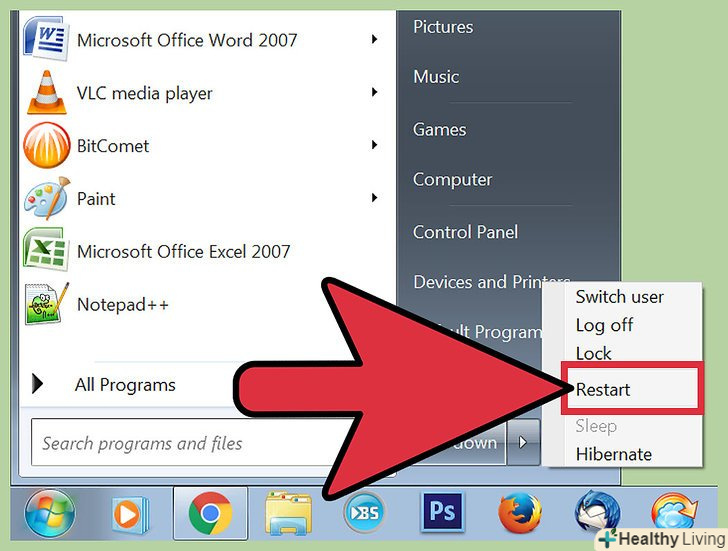 Перезавантажте комп'ютер, якщо виникли неполадки.Пам'ятайте, що перезавантаження комп'ютера може вирішити більше проблем, ніж здається. Перед перезавантаженням обов'язково збережіть відкриті документи.