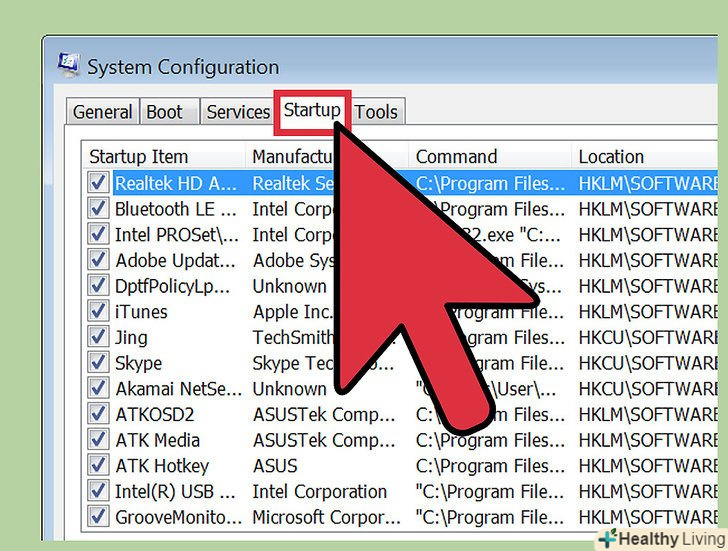 - В Windows Vista/7 натисніть⊞ Win+R і введіть msconfig. Перейдіть на вкладку "Автозавантаження". Приберіть прапорець у кожної програми, які ви хочете видалити з автозавантаження. Якщо ви не знаєте, для чого призначена та чи інша програма, пошукайте інформацію про неї в Інтернеті — просто введіть ім'я програми в пошуковику і перегляньте перші результати пошуку.
