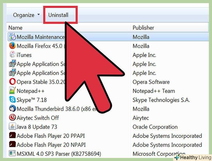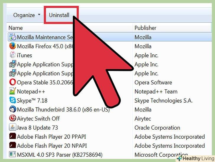 Виберіть шкідливу програму і натисніть "Видалити". дотримуйтесь інструкцій на екрані, щоб видалити програму. Повторіть це з іншими небажаними програмами.- Крім того, можна видалити програми, які вам відомі, але якими ви не користуєтеся. Наприклад, старі ігри, невикористовувані браузери і утиліти, а також інші програми, які не є шкідливими, можуть сповільнювати роботу комп'ютера. Видаліть такі програми, щоб звільнити місце і прискорити запуск комп'ютера.