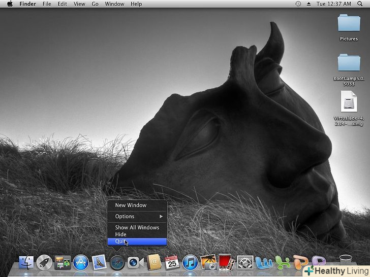 - Натисніть і утримуйте іконку, поки не з'являться три варіанти. Виберіть опцію Quit для виходу з програми.