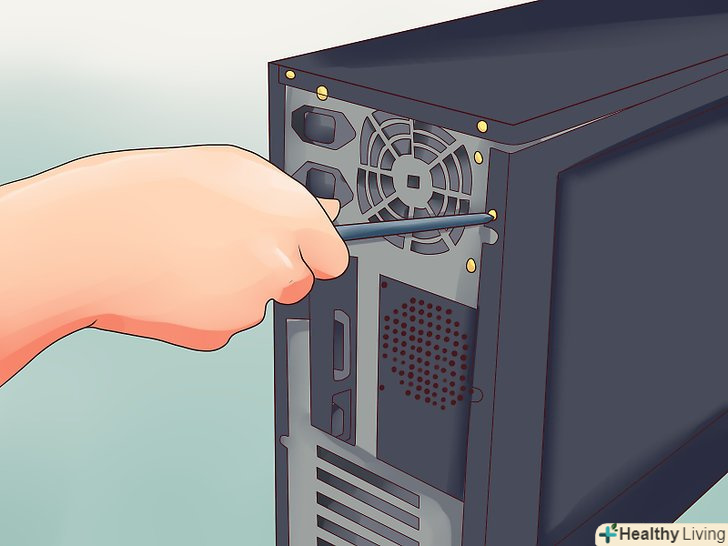 Зніміть існуючу карту.при оновленні Відеокарти ви захочете видалити стару карту перед установкою нової. Відкрутіть гвинт, який, кріпить карту в корпусі. Більшість нових карт має петельку внизу, поблизу задньої частини слота PCI, яку необхідно буде звільнити для того, щоб витягнути карту.- При витяганні карти потягніть її вгору так, щоб не пошкодити слот PCI.