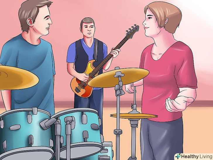 Знайдіть групу людей, з якими можна грати .Розчистіть гараж, встановіть підсилювачі, і попередьте сусідів: пора збирати групу. Почніть розповідати, що шукаєте найманців для рок'н'ролла на новоспечений піратський корабель. Одягніться в джинсові куртки і старі кросівки і починайте змінювати світ за три акорди за раз.- Розмістіть флаєр з вашою контактною інформацією в місцевому магазині гітар або музичній крамниці, якщо у вас проблеми з пошуком бажаючих гравців. Виступіть на вільному мікрофоні в кав'ярнях або барах у вашому районі і покрасуйтесь навичками, щоб привернути увагу і отримати людей, які хочуть з вами грати.