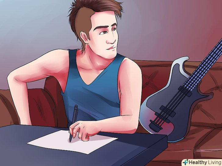 Пишіть про те, що знаєте.якщо ви натрапили на унікальний невеликий малюнок, або помітний невеликий "хвостик" в одній з ваших джем-сейшн, може бути саме час почати писати пісню. Як почати? Щоб написати рок-пісню не потрібно бути Шекспіром, і зазвичай краще обійтися без завищених очікувань, коли справа доходить до лірики. Зосередьтеся на своєму житті і пишіть про те, що знаєте, а не намагайтеся писати абстрактну нісенітницю про «суспільство» або політику. Будьте простіше.- Вчіть вірші і витратьте гроші на хороший словник рим для допомоги в ваших ліричних навичках. Спробуйте і пишіть групою, змінюючи рядки, щоб було демократично, якщо хочете. Деякі автори вважають корисним писати мелодію перш, ніж співати безглузді склади в пісні і накласти на неї слова пізніше.