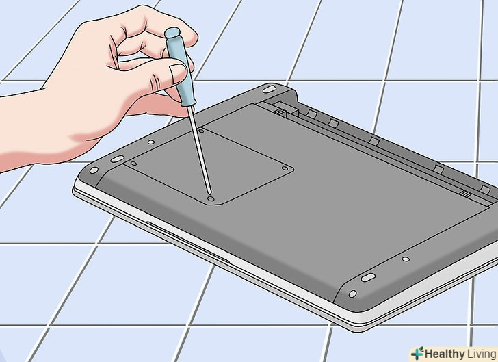 Вимкніть ноутбук, переверніть його і вийміть батарею.