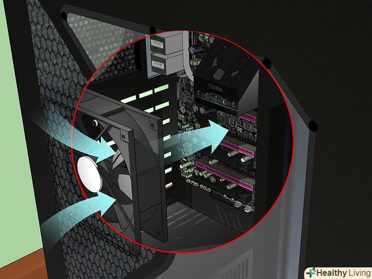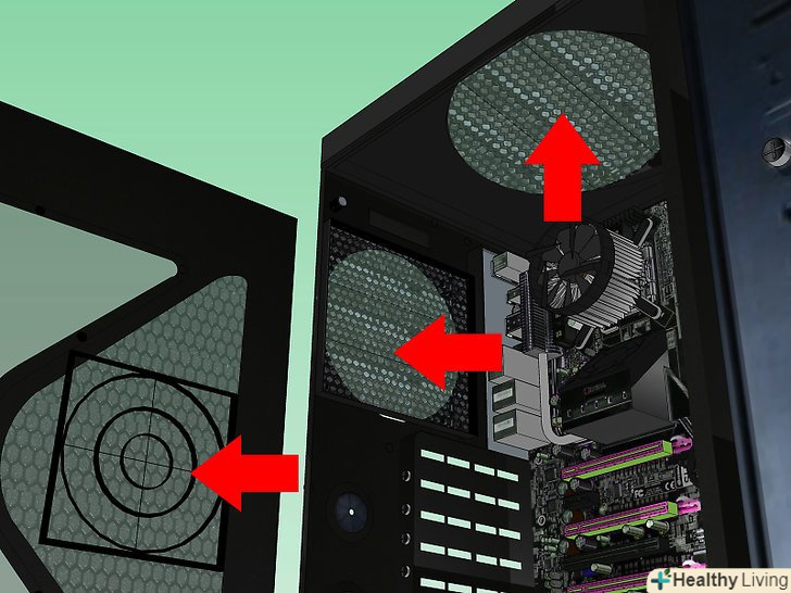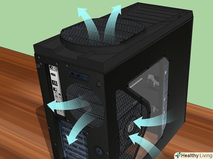 Усвідомте ефективність системи повітряного охолодження. вентилятори не тільки подають повітря на комп'ютерні компоненти (це не найефективніший спосіб охолодження комп'ютера). Вентилятори повинні створювати повітряний потік всередині корпусу-затягувати холодне повітря і викидати Гарячий.[1]